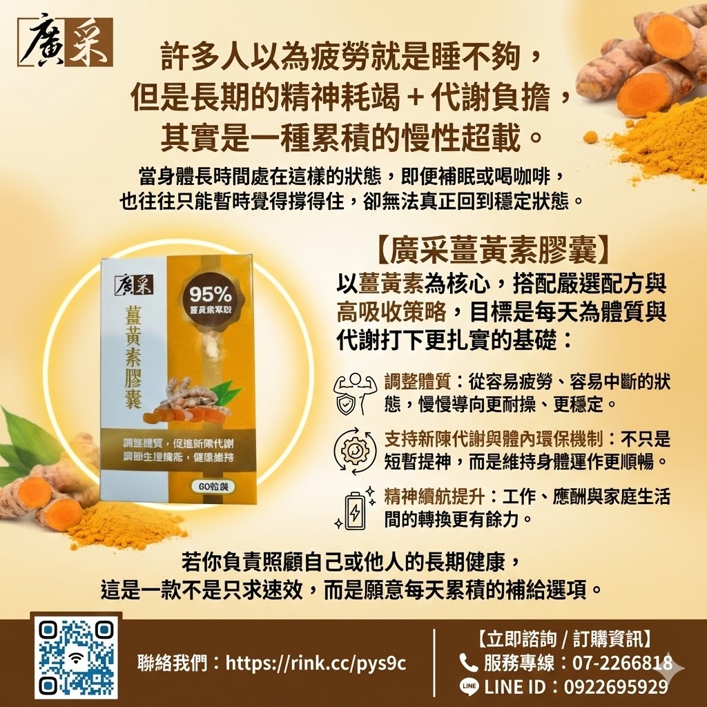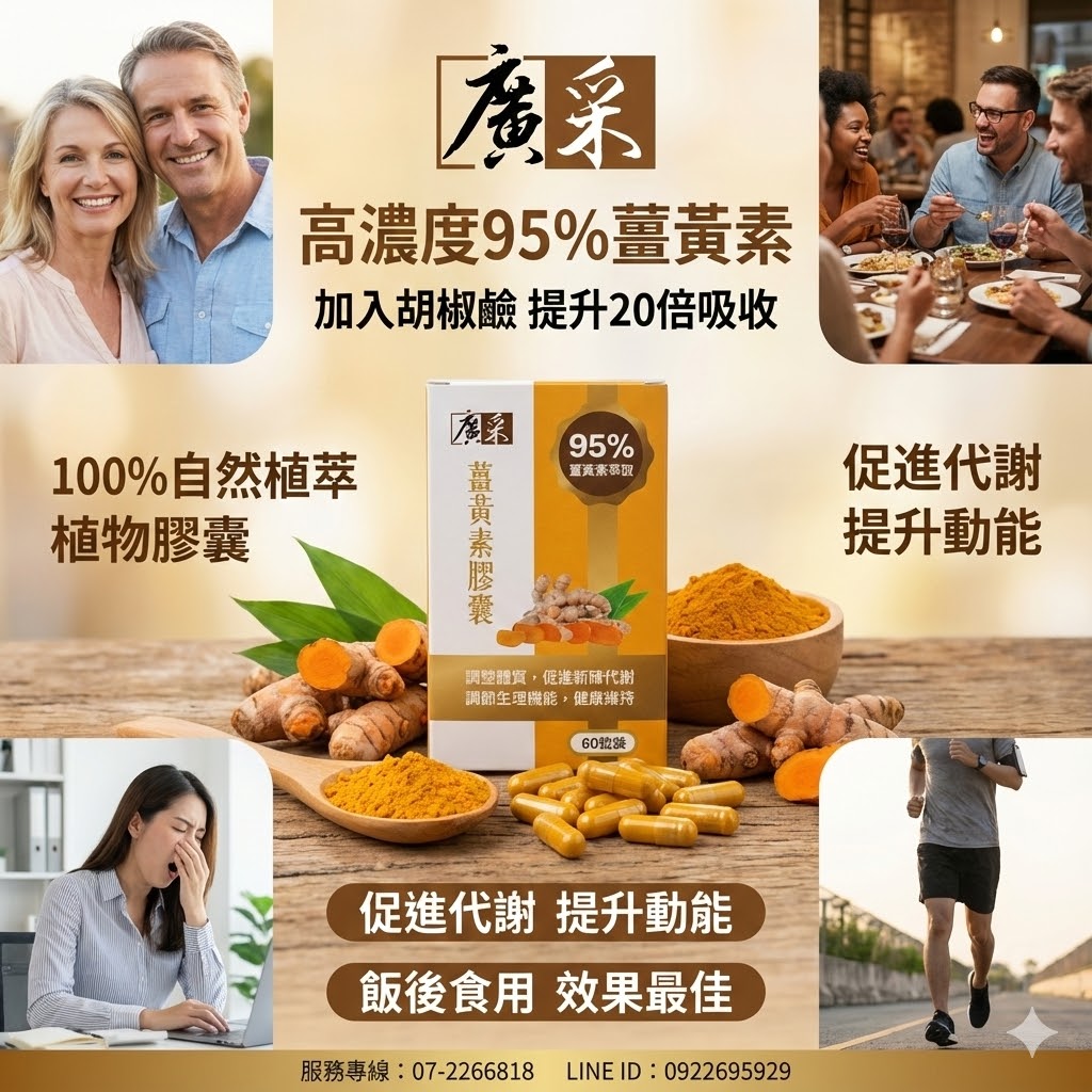 / 【廣采薑黃素膠囊──95% 極致純度,重新定義「黃金」價值】調整體質、促進新陳代謝、調節生理機能、健康維持。