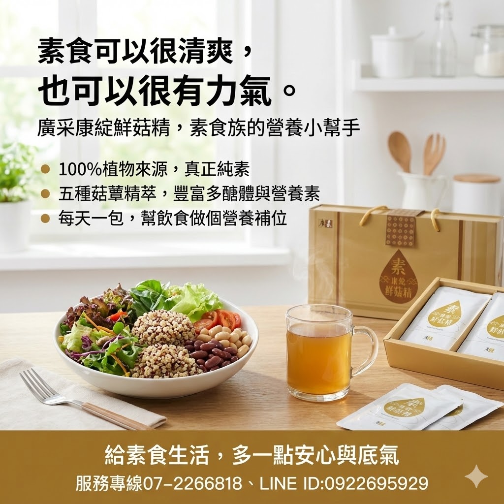 我們給您五倍的呵護! 市面上的菇蕈產品往往單一,但廣采深知,多元攝取才能建構完整的健康防護網。