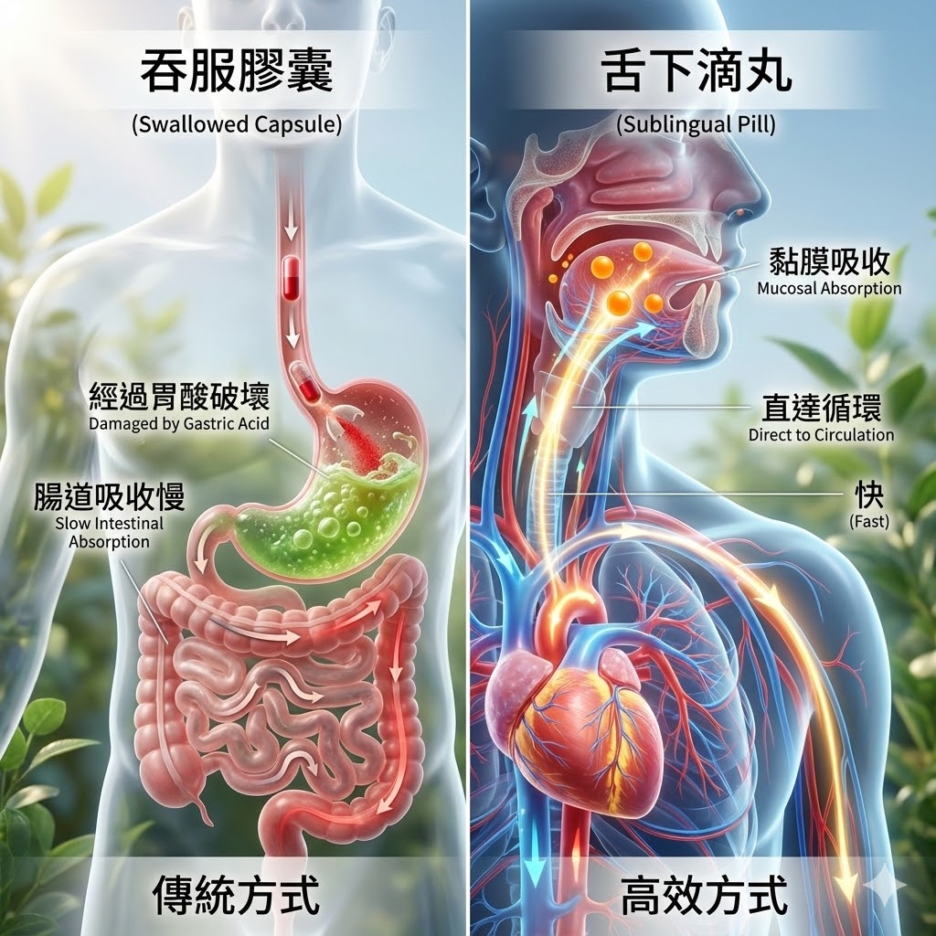 2.吸收高效:舌下含服,成分直接進入血液,吸收更快速。